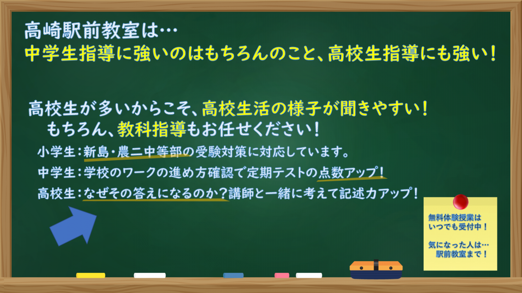是非一度、高崎駅前教室の無料体験授業・教室見学にお越しください!