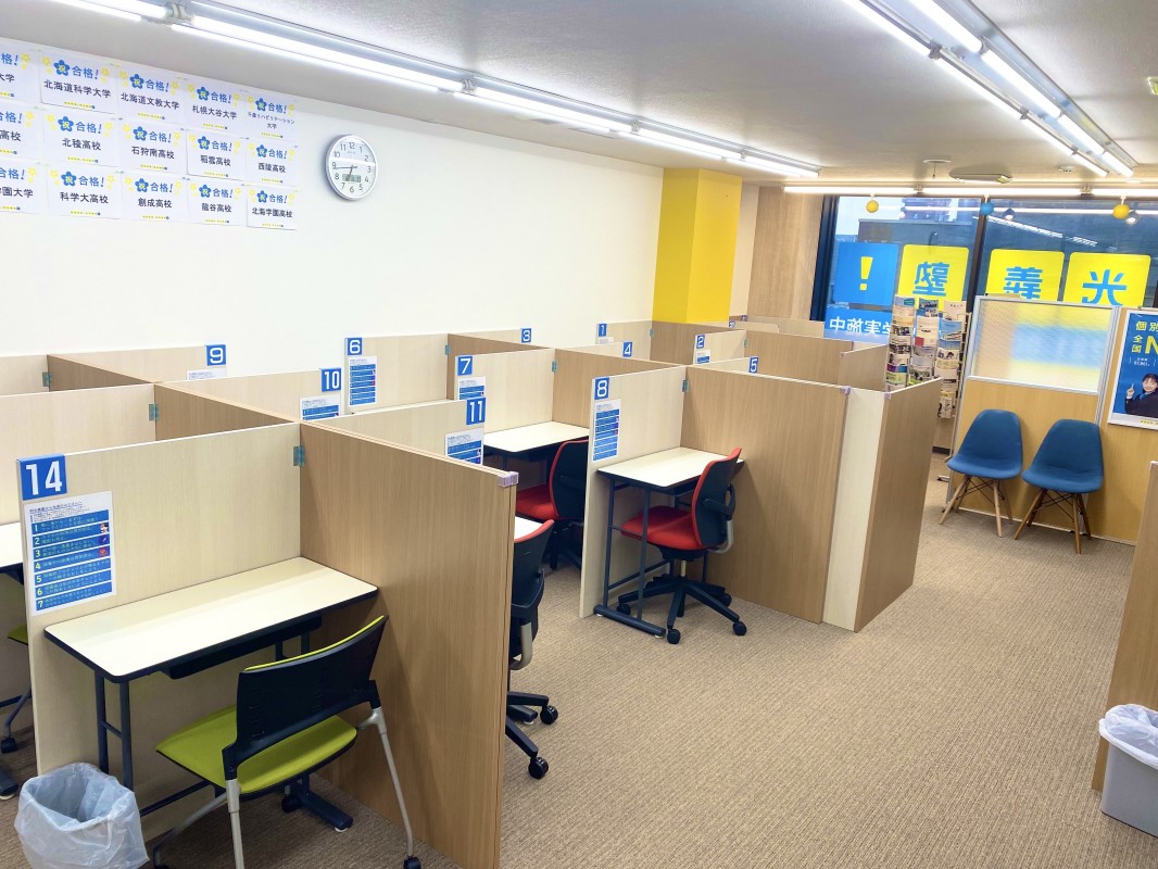 「地下鉄栄町駅」「栄町バスターミナル」のすぐそばにあり、高校生や私立中の子も多く通ってくれています。自習なども行えますので色々な学習の仕方をご提案できます。