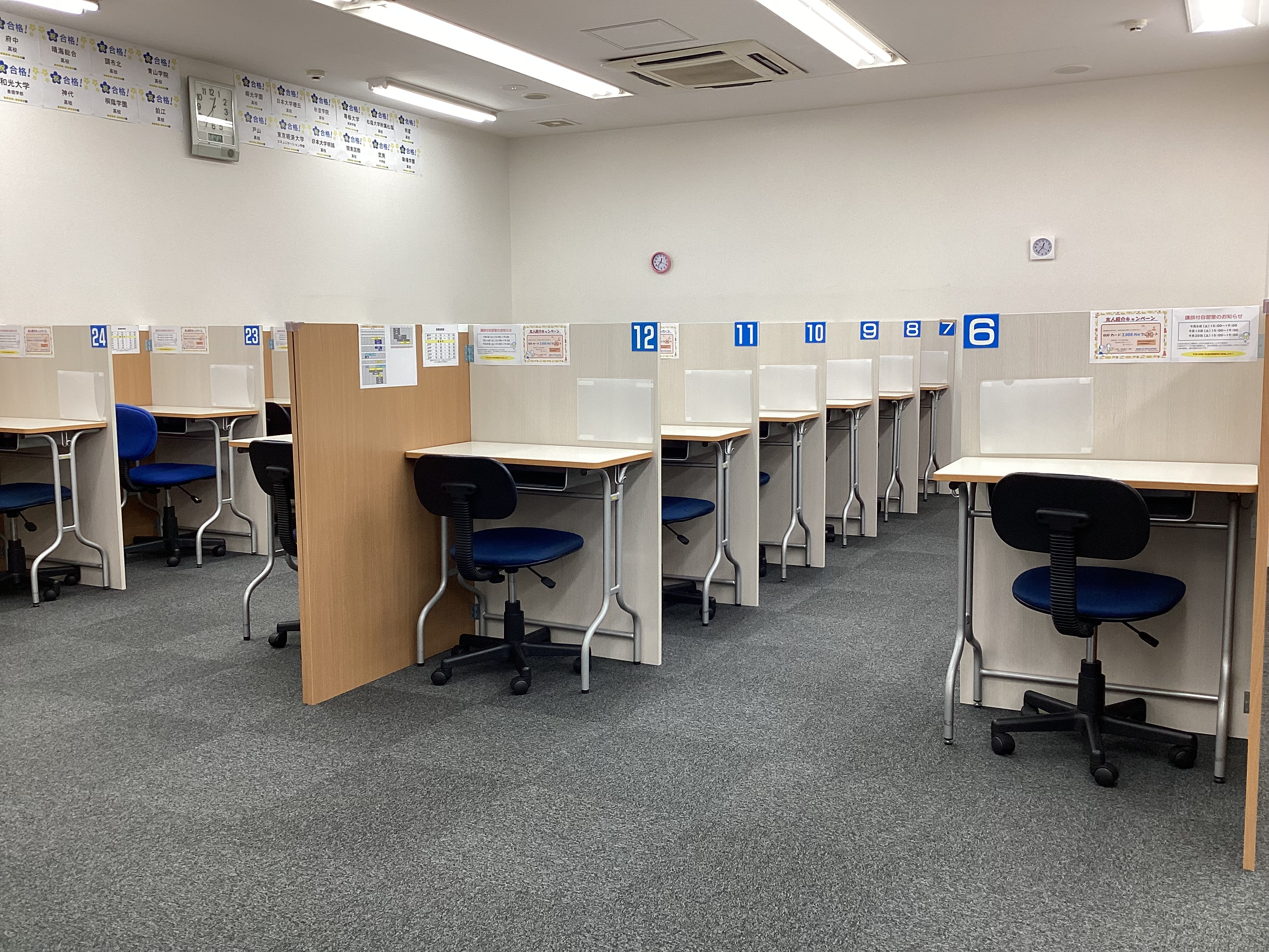 狛江教室では自習に来る生徒さんが多数います。各座席がパネルで仕切られているので、集中して取り組むことができます。